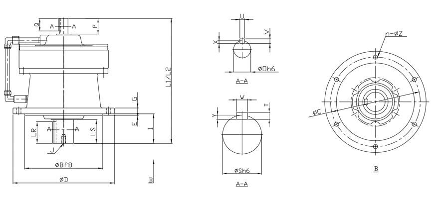 | 型號 Size | L1 | 入力軸 Input shaft | 鍵 Key | ||||||||||||